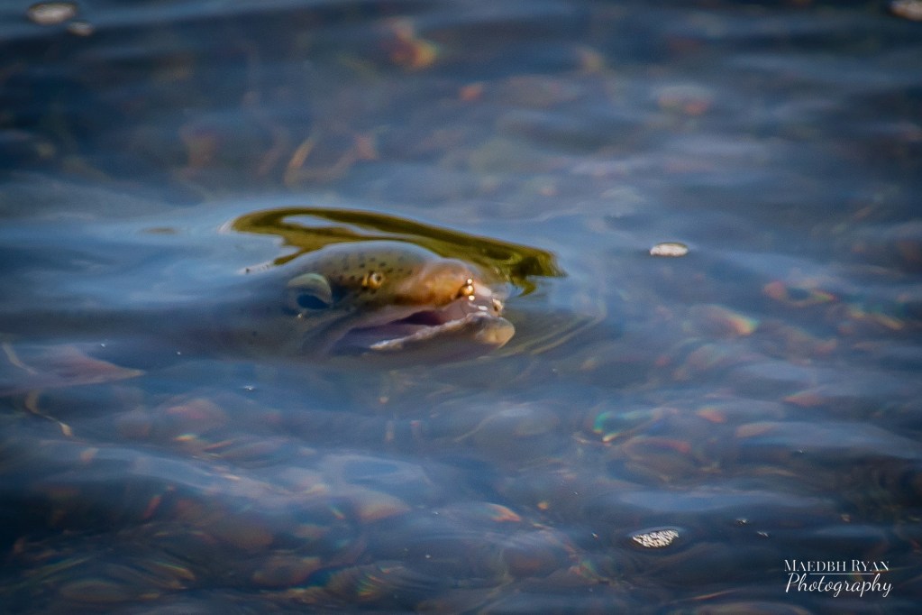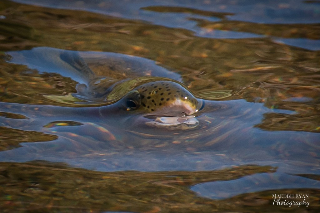 A disappointing start, all was not lost as Maedbh had made the most of the hour capturing a series of rising trout photos. Presented with a stream with fish as fearless as they are discerning, she was able to station herself upstream of a small pod and capture countless rises without disrupting their feeding. (Look closely, and you’ll see a tiny trico in nearly every image.)