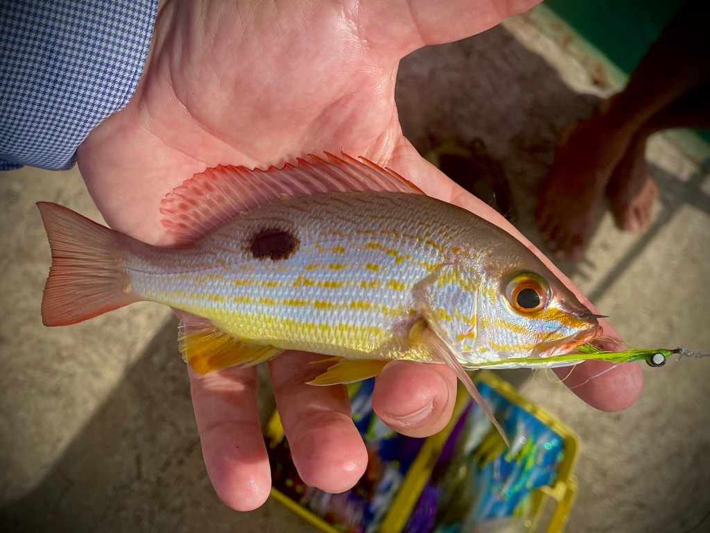 Counting down my line in 20+ feet of water, I was immediately rewarded as a string of small Rose Spotted Snapper and Yellow Snapper came to hand. The skunk was broken. Needless to say, I was elated as I made my way to the lodge for lunch.
